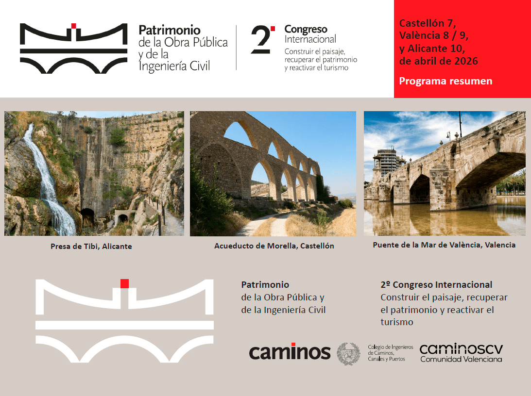 Tras el éxito del 1er. Congreso, que tuvo lugar en septiembre de 2023, el Colegio de Ingenieros de Caminos, Canales y Puertos y su Demarcación en la Comunidad Valenciana organizan el II Congreso Internacional de Patrimonio de la Obra Pública y la Ingeniería Civil con el objetivo de identificar, ensalzar, recuperar y rentabilizar el patrimonio de la obra pública en su entorno paisajístico, sobre todo tras la DANA de octubre de 2024.